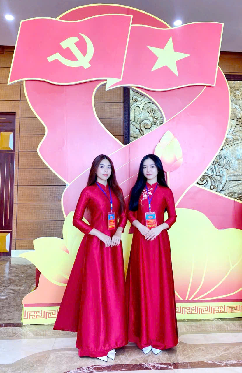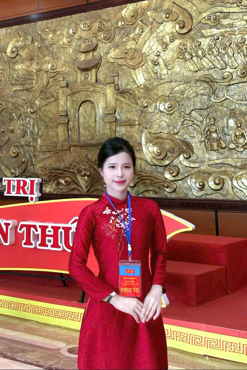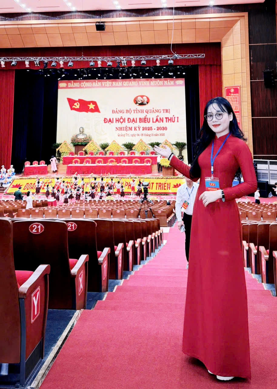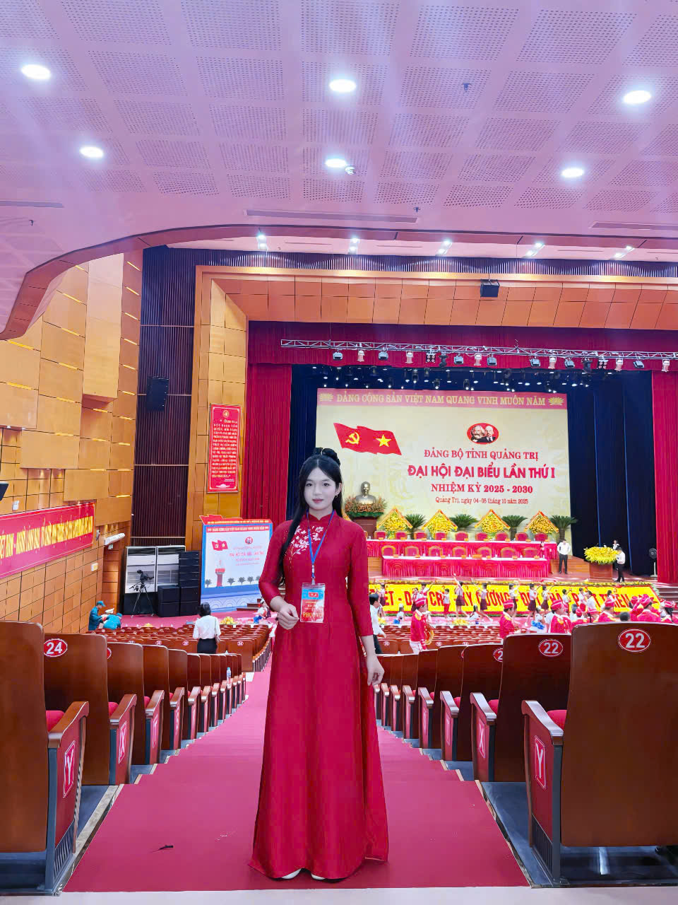 Một số hình ảnh: Sinh viên Đại học Quảng Bình trong tà áo dài tham gia đón đại biểu, hỗ trợ công tác hậu cần và nghi lễ tại Đại hội Đảng bộ tỉnh Quảng Trị.